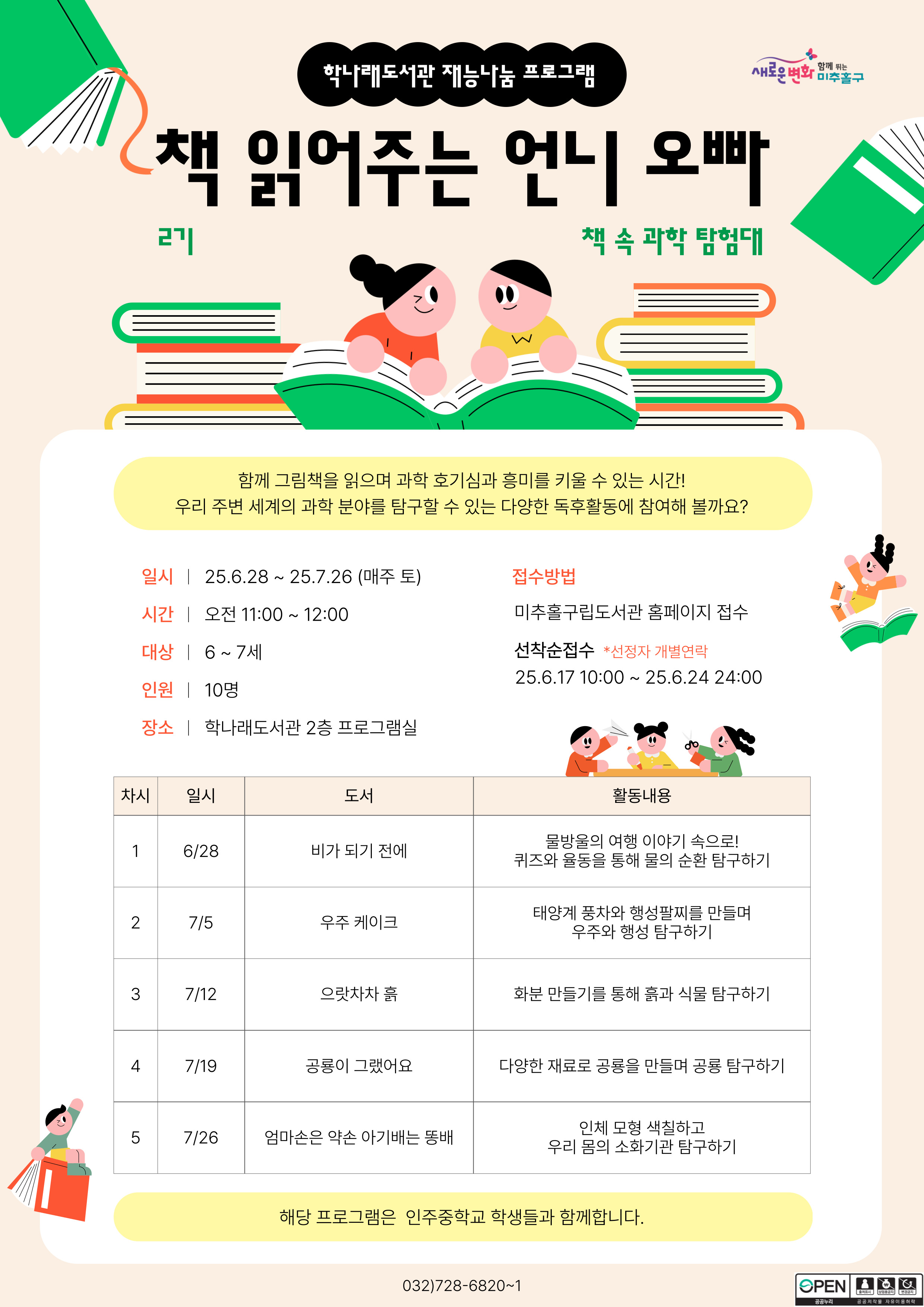 미추홀구립도서관 홈페이지 → 독서문화 프로그램 → 프로그램 안내 → 학나래도서관