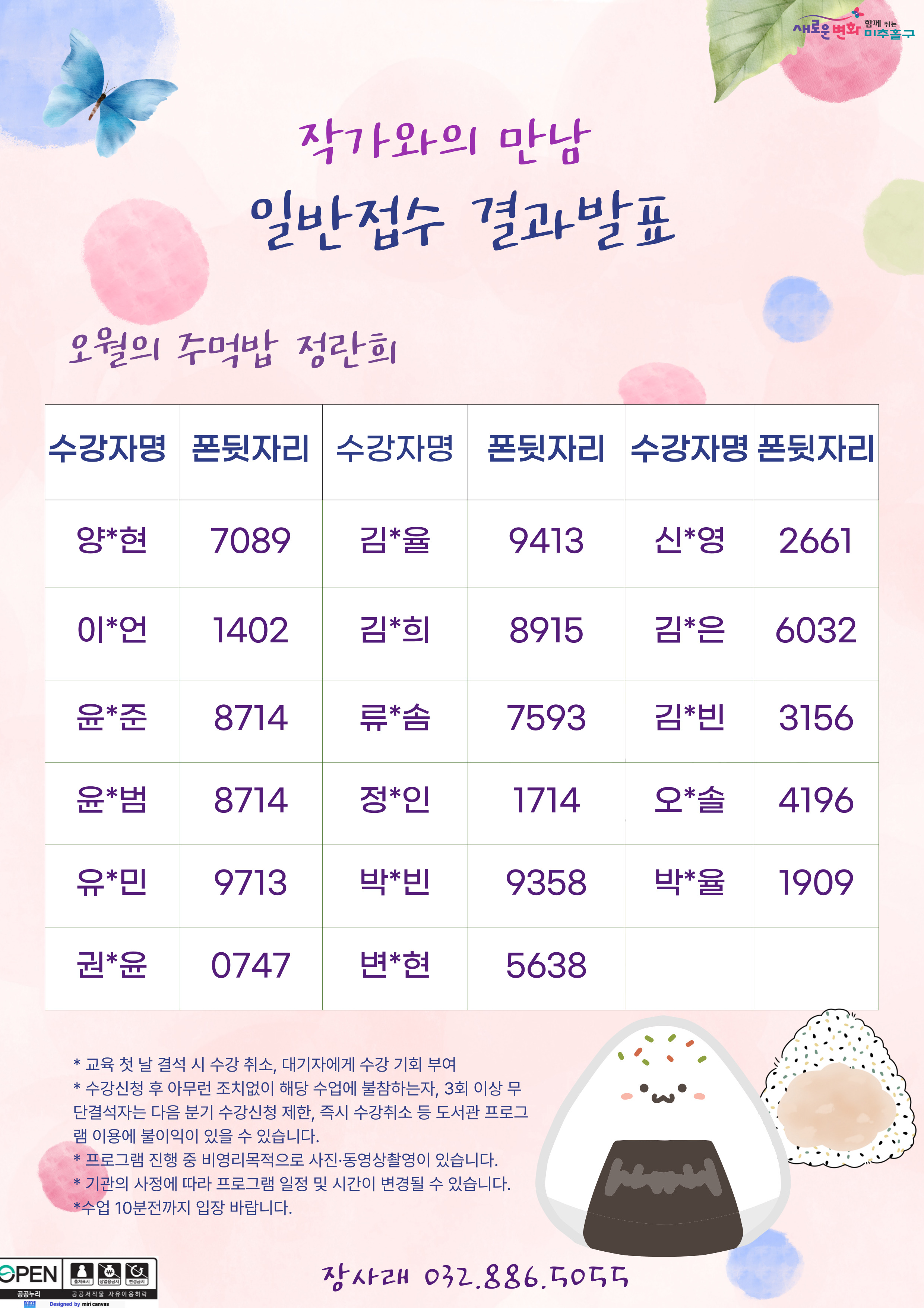 [안내]2025년 장사래 특화프로그램 "오월의 주먹밥" 일반 접수 결과 안내