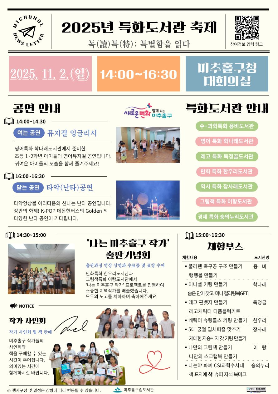 2025년 미추홀구립 특화도서관 축제가 처음으로 열립니다:)