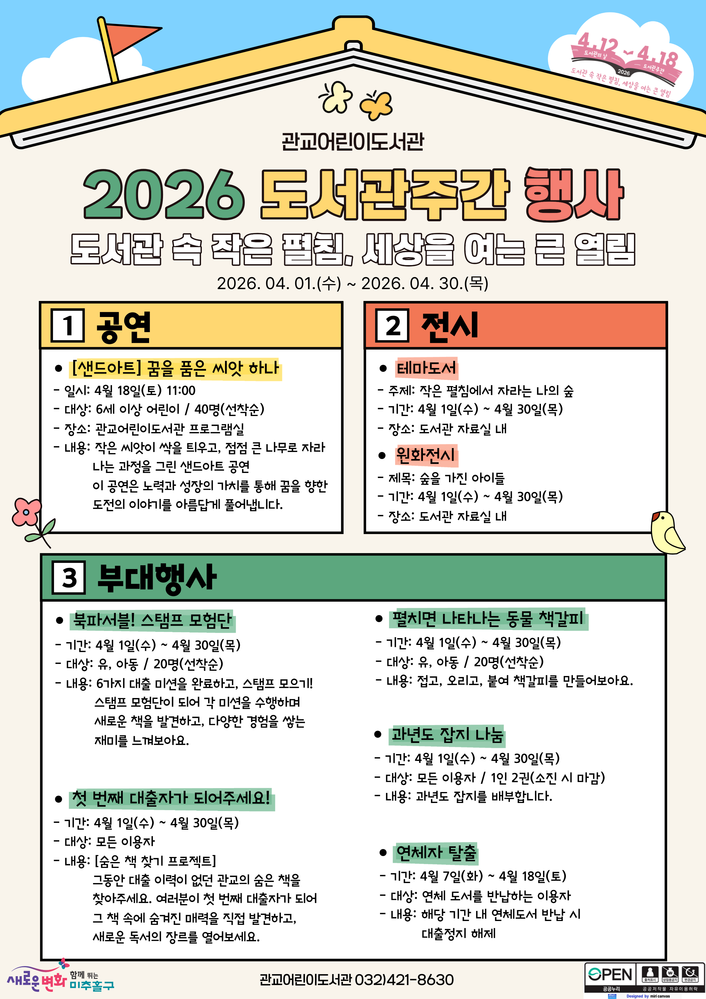 * 유의사항 - 공연 신청 후 아무런 조치없이 해당 행사에 불참하는 자는 다음 분기 수강신청 제한·즉시 수강취소 등 도서관 프로그램 이용에 불이익이 있을 수 있습니다. - 행사 진행 중 비영리 목적의 사진·동영상 촬영이 있습니다. - 기관 및 강사 사정에 의해 운영 내용이 변경될 수 있습니다.