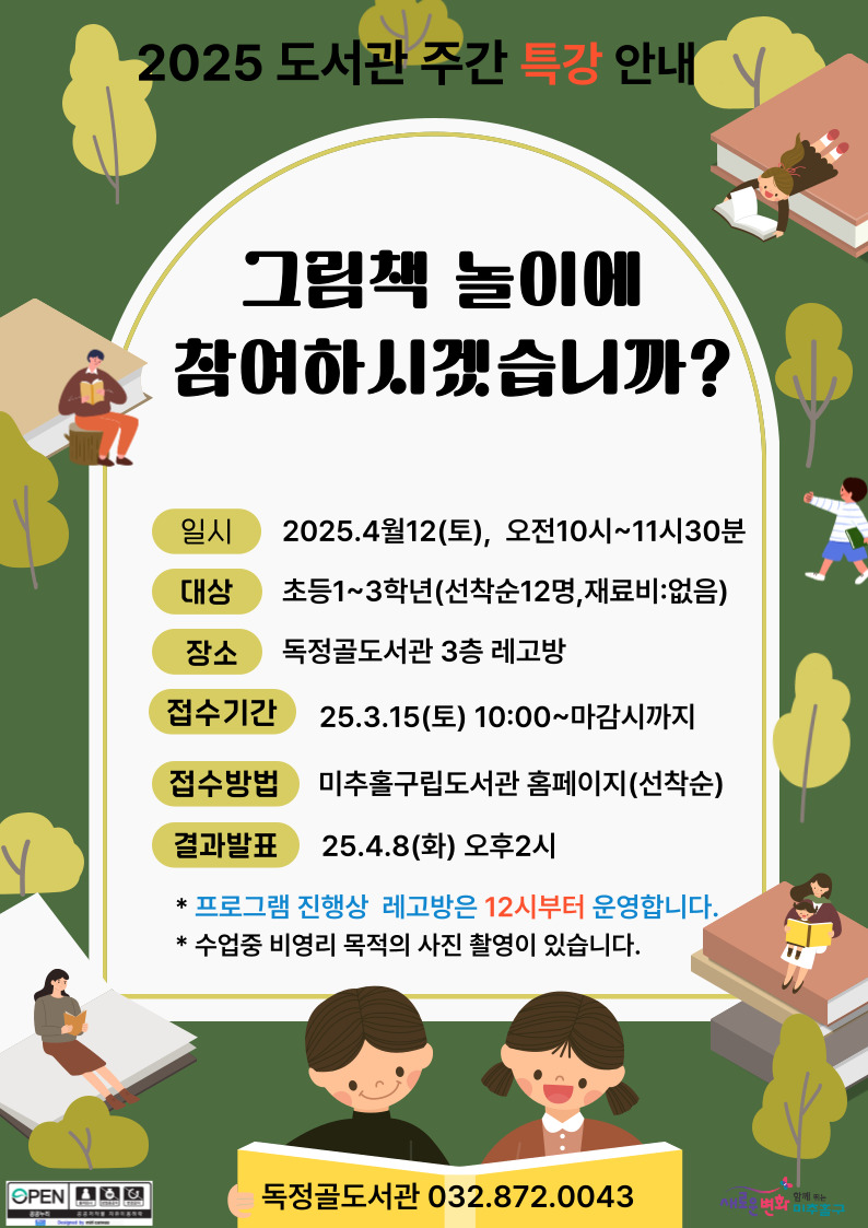 [2025 도서관주간 특강 접수]-그림책 놀이에 참여하시겠습니까? |
