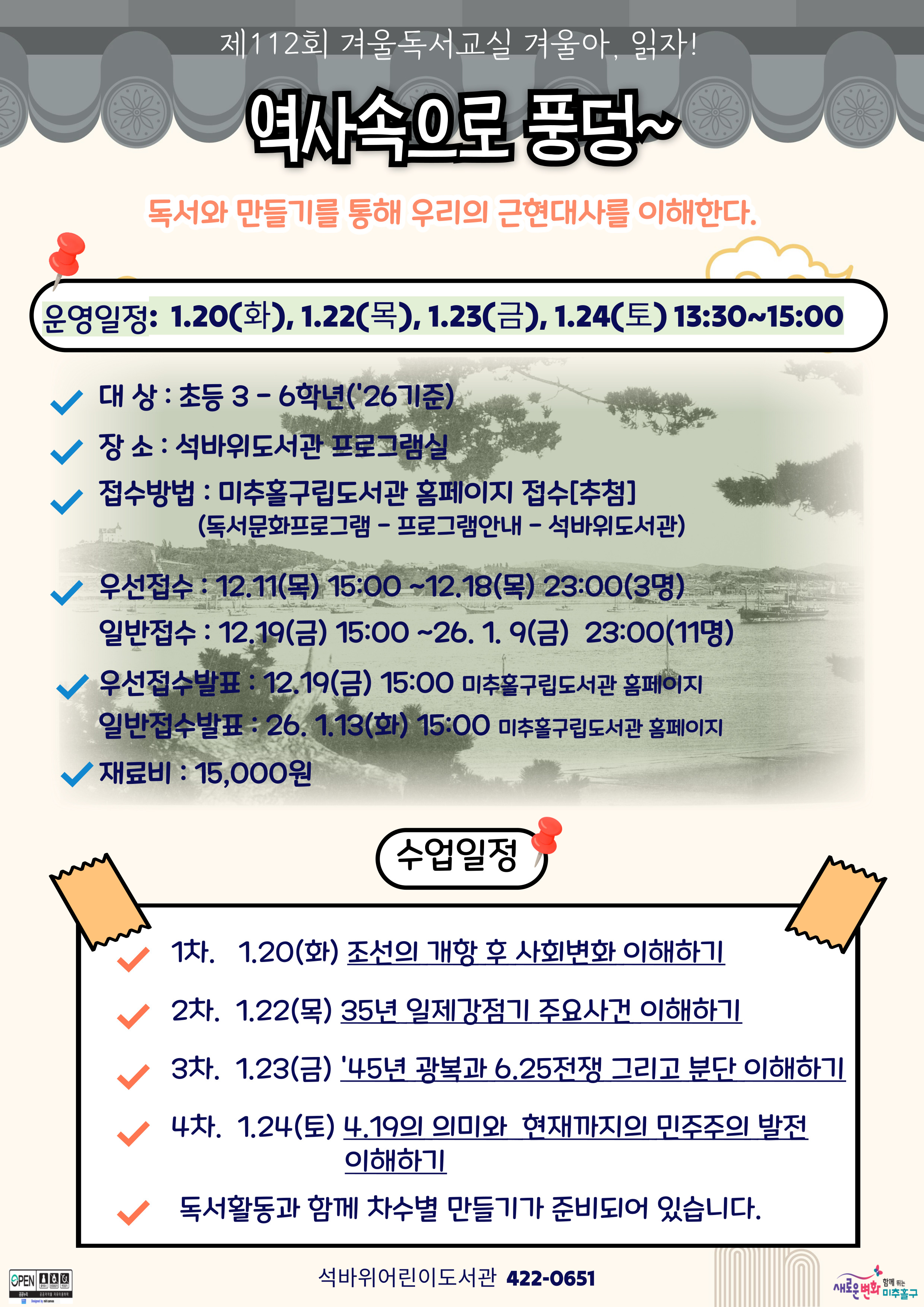 [안내] 2026 겨울독서교실 [역사속으로 풍덩~] 우선접수 안내 |