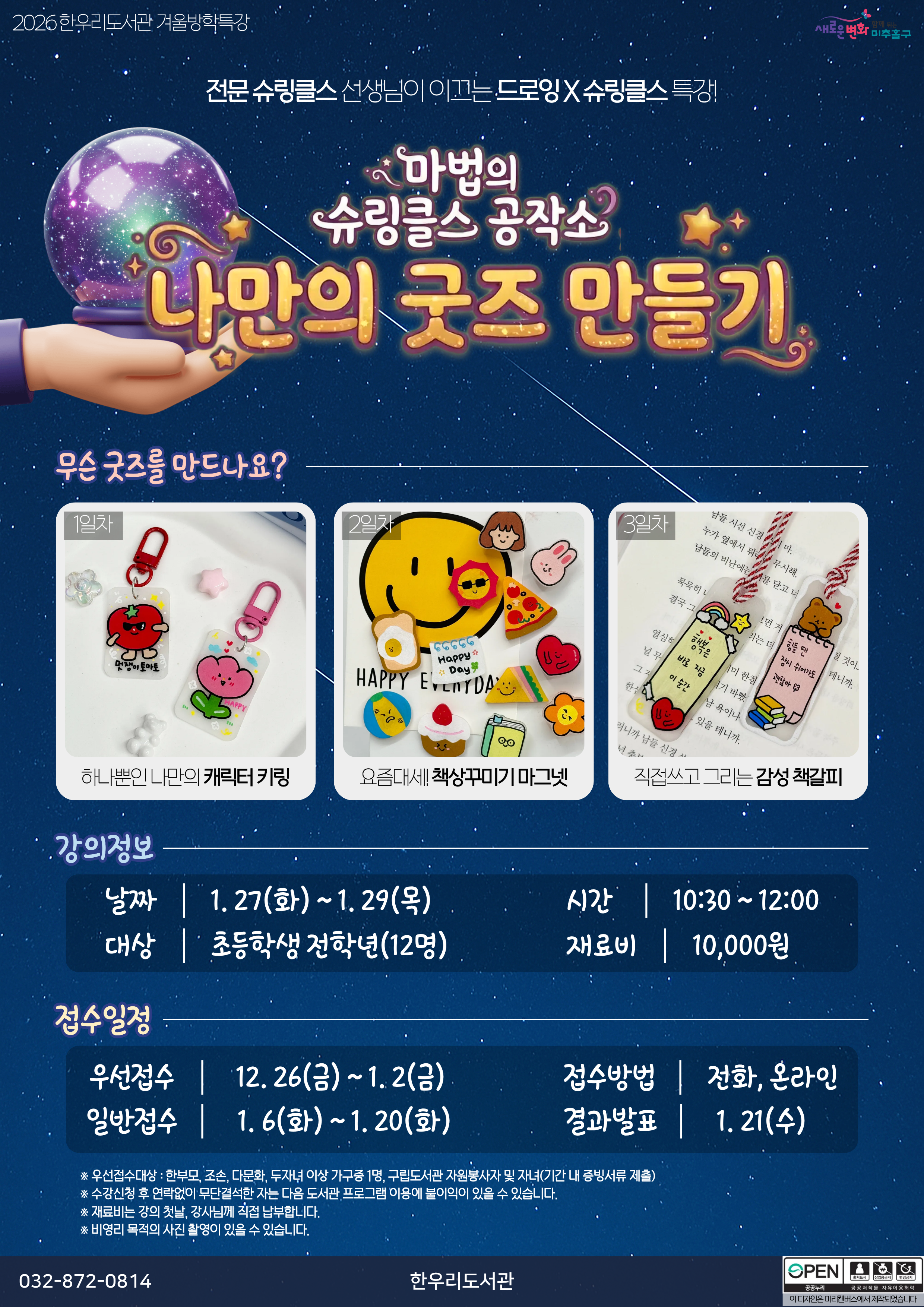 [일반접수] 2026 겨울방학특강 <나만의 굿즈 만들기>(추첨) |